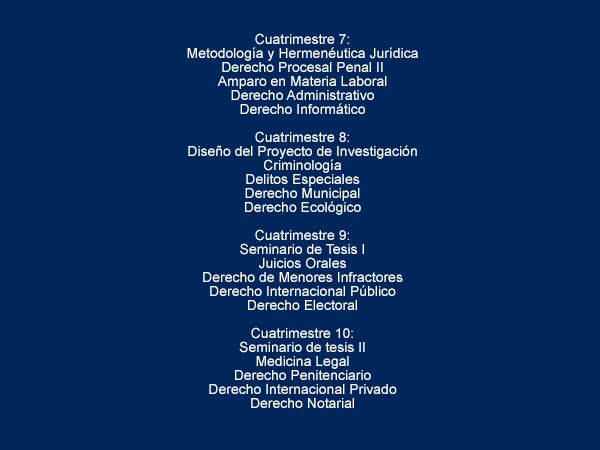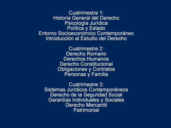 Formar abogados que interpreten y apliquen las competencias y las normas jurídicas, basadas en los principios teóricos y metodológicos vigentes del derecho. Así como fundamentar los valores de justicia, igualdad, seguridad, orden y el bien común; ejecutando los conocimientos y habilidades en la resolución de problemas de acuerdo a las necesidades actuales de nuestra sociedad.